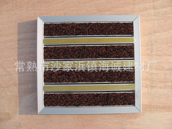 (海诚牌)铝合金防尘地毯年销售量达到到5万平方米左右,是专门用在各大超市、酒店、宾馆、银行、医院、机场、连锁店堂、企事业单位、豪华别墅和寻常百姓的进(入)门口,是采用耐腐蚀的氧化铝合金和进口毯面、热缩性橡胶制成的新型门垫,最新的除尘、防滑、美化入口新型产品,既美观又大方,给人一种高层次的享受!