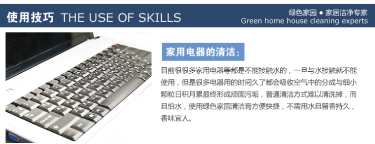 1、塑料、皮革、金属制品的擦拭:用海绵沾适量清洁膏擦拭后,再用干布擦干即可(配市场销售的百洁布效果更佳)