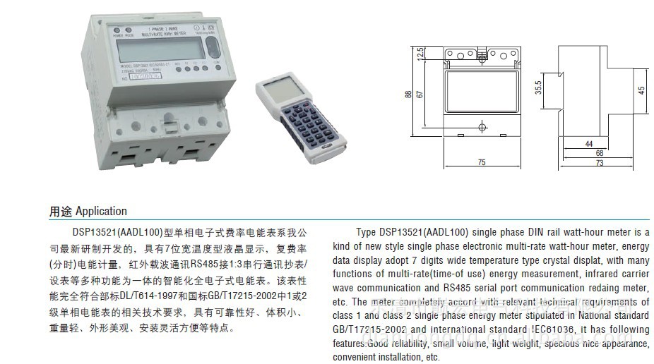 安装图 导轨式安装电能表采用35mm标准导轨式安装方式,如下图