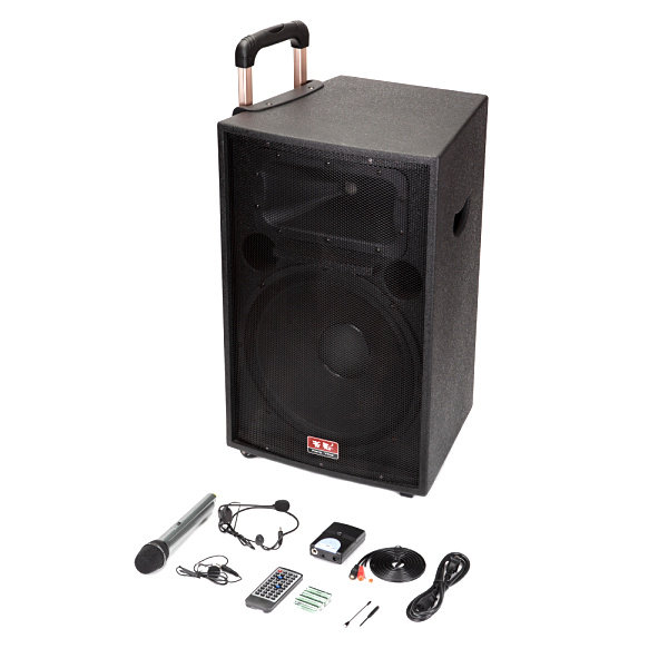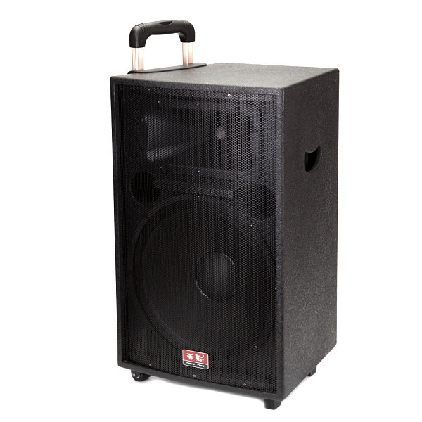 15寸低音喇叭1只,号角高音喇叭1只,2路3寸低音导相孔,350W实际大功率,