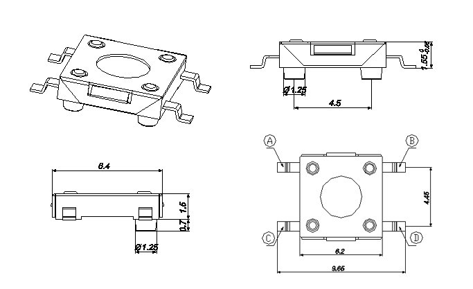 贴片轻触开关 >> 6.0x6.0贴片轻触开关 >> 6x6.2x0.8贴片轻触开关-DHT-6062A_汽车音响专用开关 |