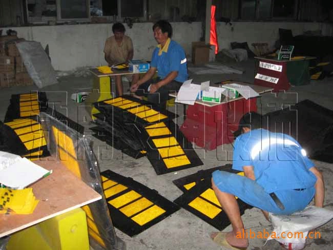 减速带采用高强橡胶制作而成,产品坚固耐用,耐压持久寿命长,对车的磨损少,无噪音,减震性、抗压性极好。颜色为醒目的黄黑相间,色彩分明,无论在白天或夜晚都具有高度可视性,吸引驾车者注意减速。