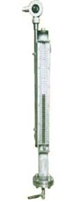 液位计根据浮力原理和磁性耦合作用研制而成。当被测容器中的液位升降时,液位计主导管中的浮子随之升降,浮子内的永久磁钢通过磁耦合传递到现场指示器,驱动红、白翻柱翻转1800,当液位上升时,翻柱由白色转为红色、当液位下降时,翻柱由红色转为白色,指示器的红、白界位处为容器内介质液位的实际高度,从面实现液位的指示。