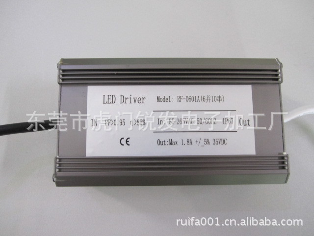 尺 寸:L:W:H 150:70:43MM效率 ≥85%应用范围:60W(6并10串)的大功率LED。可扩展参数:输出电压在85-265V以内。输出功率最大为60W。输出电流可在1.8A内调节
