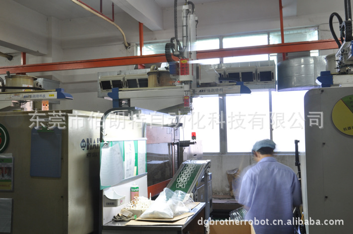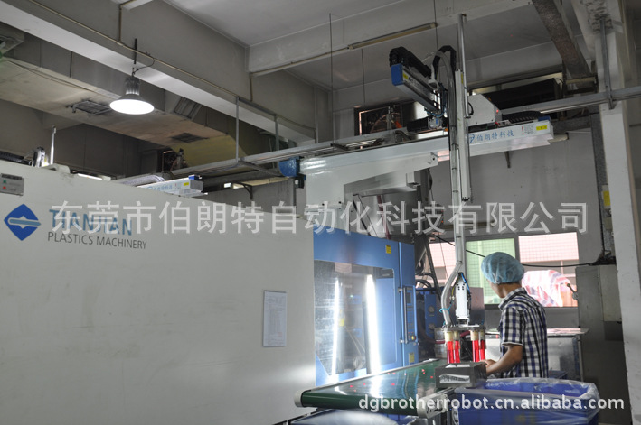 BRB800-1200 Series is applicable to all types of horizontal injection machine ranges of 100~650T for take-out products and sprues. Vertical arm is telescopic type, suitable for two plate mold products take out. Traverse axle and vertical axle driven by AC servo motor. After installed this robot, the productivity will be increased 10~30%, reduce defective rate, ensure safety of operators, reduce manpower and accurately control the output to reduce waste.