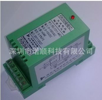 概述: RS-2011系列频率隔离变送器,能将输入的频率信号按比例转换成与输入信号隔离的标准输出信号,输入频率信号为0~50Hz~10KHz(任意选定),用户也可以自定义,最小输入频率为50Hz,最大输入为10KHz。输出信号有4~20mA、0~20mA、0~5VDC和0~10VDC等多种形式。实现输入信号、输出信号、辅助电源之间2500VDC三隔离,有效解决大地回路串扰问题。 RS-2011系列频率隔离变送器广泛应用在电力、远程监控、仪器仪表、医疗设备、工业自控等各个需要电量隔离测控的行业。 型号说明: RS-2011-**D1-0.2/xxKHz RS----产品品牌标记 2011----频率输入产品类别序号 第一个“*”----输出代码 1:4~20mA 2:0~20mA 3:0~5V 4:0~10V 第二个“*”----辅助电源代码 1:+5VDC 2:+12VDC 3:+15VDC 4:+24VDC 0.2----精度等级0.2% xxKHz----输入信号 RS-2011系列频率隔离变送器