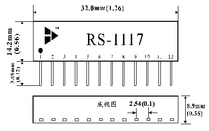 | 概述: RS-1117系交流电压隔离变送器,能将输入的交流信号按比例转换成4~20mA(或0~5V)标准信号,输入为0~1Vrms交流电压信号;输出为4~20mA(或0~5V)直流信号。实现辅助电源和输入输出信号之间2500VDC隔离,RS-1117系交流电压隔离变送器已在电力、远程监控、仪器仪表、医疗设备、工业自控等领域得到广泛应用。 型号说明: RS-1117-**S12-0.5/xxVAC RS----产品品牌标记 1117----交流电压/直流信号变换模块类别序号 第一个“*”----输出代码    1:4~20mA    2:0~20mA    3:0~5V    4:0~10V 第二个“*”----辅助电源代码    1:+5VDC    2:+12VDC    3:+15VDC    4:+24VDC 0.5----精度等级0.5% xxVAC----输入信号额定值 主要技术指标: 输   入-----------------0~1VAC 信号频率:------------50/60 Hz 输出电流信号:------4~20 mA DC 输出电压信号:------0~5V DC 精   度---------------- 0.5% 辅助电源--------------- DC+5V(+15V、+12V、+24V) 隔离耐压 ------------ 信号输入输出/辅助电源2500VDC(1分钟,漏电流 1mA) 输入过载能力--------2倍额定(连续) 工作温湿度---------- -10 ~ +70℃ 存储温湿度---------- -20 ~ +80℃ 输出负载能力---------<350Ω(500Ω需订制)(20mA电流输出) ---------------------------> 2KΩ(0~5V电流输出) 响应时间---------------<400mS 功率-------------------< 0.5W(20mA输出)