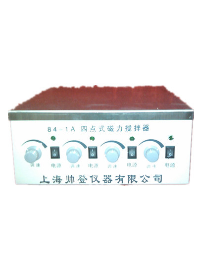 84-1A四点式磁力搅拌器:电源:AC220V±10% 搅拌转速:100~1800r/min 每工位最大搅拌容量:1000ml 电机转矩:12.5mN·m