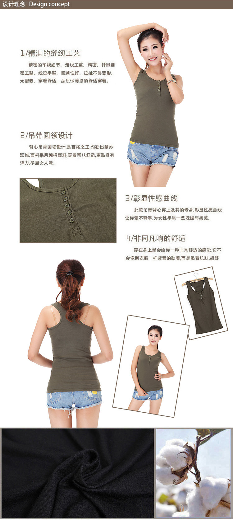 供应批发韩版女式纯棉工字带纽扣吊带背心 运动打底百搭经典款