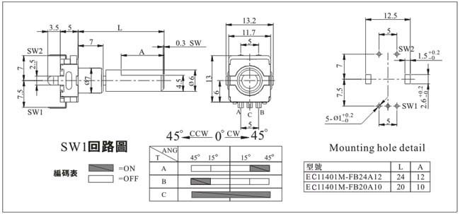 2:左右自动复位,带按压开关