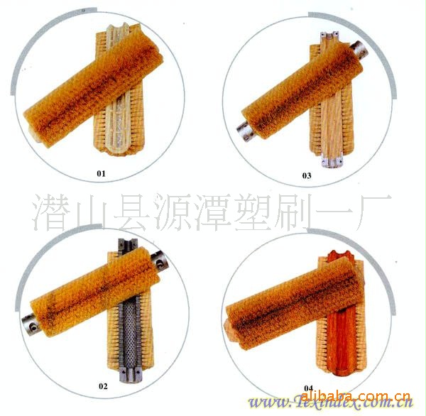 1、纺织业:产品有定型机毛刷轮、磨毛机毛刷、刷毛机毛刷、精梳机毛刷、棕刷、细纱机毛刷、磨皮机毛刷、抛光布轮。烧毛机专用刷辊,采用猪鬃或尼龙等刷丝材料,辊轴使用45#圆钢+注塑,纺织出来的坯布上有很多多余的毛茸,烧毛辊的用途就是将这些多余的毛茸刷出来,在刷辊下方有明火将这些毛茸烧掉;分幅机开幅辊,分幅辊采用45#圆钢的辊轴、尼龙等材料的刷毛制成,由中间往两边呈人字斜方式植毛,刷辊送布入卷,人字斜的作用就是将布往两边刷使其顺直;针板压边刷轮,中间为注塑体,刷毛大多为猪鬃,用途就是将布边通过刷毛的压力压到机器的针板上去。