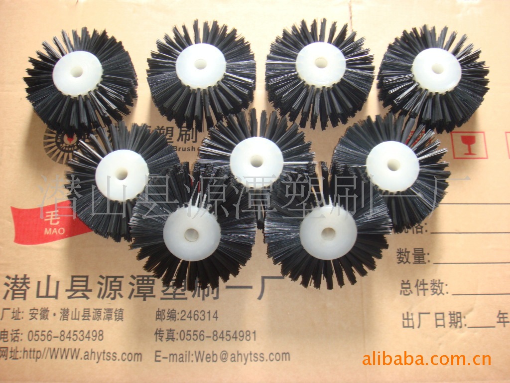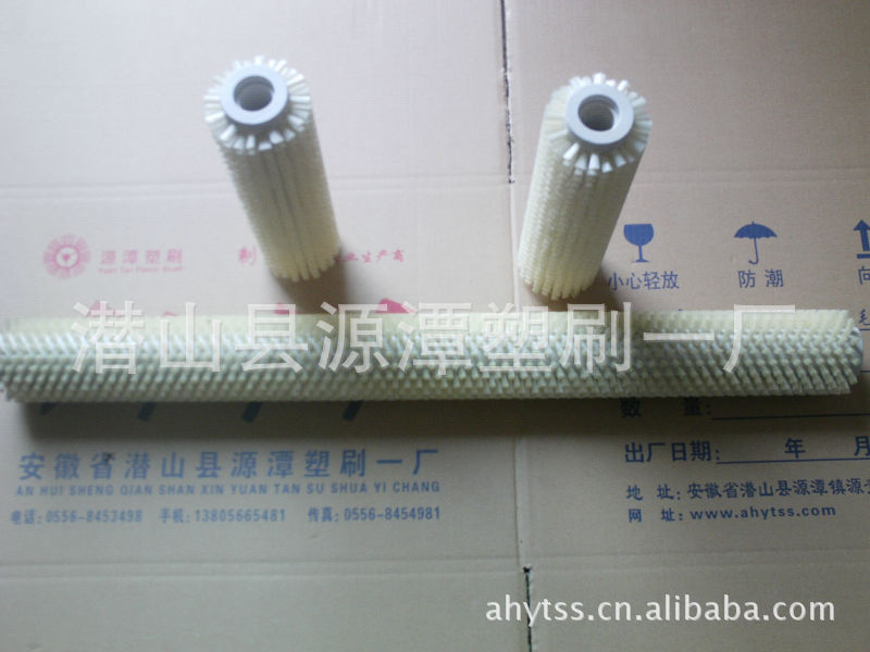 品名:毛刷辊 材料介绍: 毛刷辊用于工业清洗,抛光,除尘,传动等. 具体应用于:自动抛丸机,木业除尘抛光设备、水果清洗机,金属板材酸洗,纺织机械,造纸机械、污水处理,玻璃清洗机,纺织机械,印染机械,道路清扫车,印刷机械,烟草机械等 一、材料:1.刷体:塑料管、尼龙管、铝合金刷体,钢轴/不锈钢轴。 2.工业毛刷辊刷丝:尼龙刷丝PA66 PA1010 PA610含磨料尼龙丝 二、尺寸:(ф0.1 –ф15)规格:内径×外径×长度(ф8–ф150)×(ф25–ф800)×(L10–L5000)