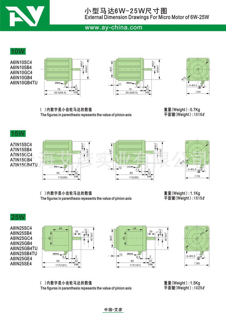 Korea AY motor (A) series specification complete power 6 W-200 W, ratio 1:3/1:18 00, our products mainly used in all kinds of low speed running mechanical, handling machinery and packaging machinery, food machinery, printing machinery, mechanical transmission, pharmaceutical machinery, advertising equipment, electronic equipment, sewage treatment equipment, industrial and mining equipment, etc. The products have passed China compulsory product certification (3 C authentication), the European Union CE, ISO9001:2000 quality system authentication.