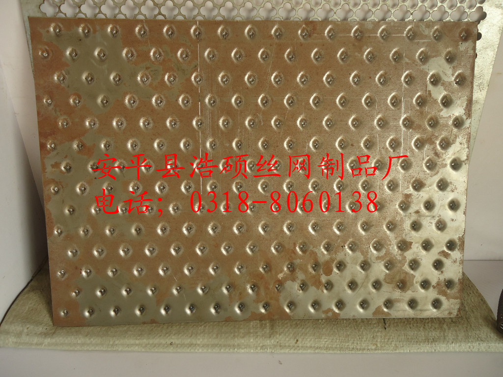 ●材质:不锈钢板、铝板、冷热钢板、铜板及纤维板、塑料板等各种非金属板。 ●用途:产品主要用于土木建筑、机械设备的防护、工艺品制造、高档音箱网罩、粮食的通风散热。也可用于建筑行业、公路、桥梁作钢筋用。产品质量已达到国家标准及行业检测标准。 ●产品特点:重量轻、防滑、美观。 ●孔型:长方孔、方孔、圆孔、三角孔、六角孔、梅花孔、鱼鳞孔、拉伸异形孔等多种孔型。并可根据客户需求订做。