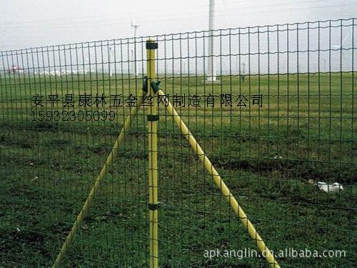 又名波浪网、波浪护栏网。 在高速公路图纸中又名:涂塑焊接网 材质: 低碳钢丝、铝镁合金丝。 表面处理:热镀锌涂塑,冷镀锌,黑丝。 编制方法: 金属网栏厂 选用优质铁丝焊接而成,将PVC或PE、PP粉末经过硫化处理涂其表面,具有附着力强、防腐性好,色泽光亮等。 制造工序: 钢丝焊后涂塑,也可单独电镀、热镀及涂塑。 规格: 1.网宽:0.5m-2.5m;2.涂前(丝径)涂后:1.0-3.0(mm)。 3.孔径:60*60,50*50 50*100,100*100(mm)。4.长度:30m 常见规格: 产品常见规格: 丝径尺寸:2.5mm 网片尺寸:1.8x30m 1.5mx 30m 2mx30m 1.2*30m 网孔尺寸:50 x 50mm 50mmx100mm 网柱高度:2.1mm 2.3mm 网柱间距:3m 整体颜色:墨绿色 草绿色 斜支撑:每30m用2根制造工序: 荷兰网是将电焊网片进行涂塑处理,也可单独电镀、热镀及涂塑。产品特点: 荷兰网具有防腐性能好,抗老化,美观大方。安装简便快捷。可以广泛应于工业、农业、市政、交通等行业的围栏、装饰、防护等设施中使用。具有过滤精度好,负荷强度高,成本低廉的特点。 用途: 产品应用于高速公路、铁路、机场、住宅小区、港口码头、饲养、畜牧等的防护。