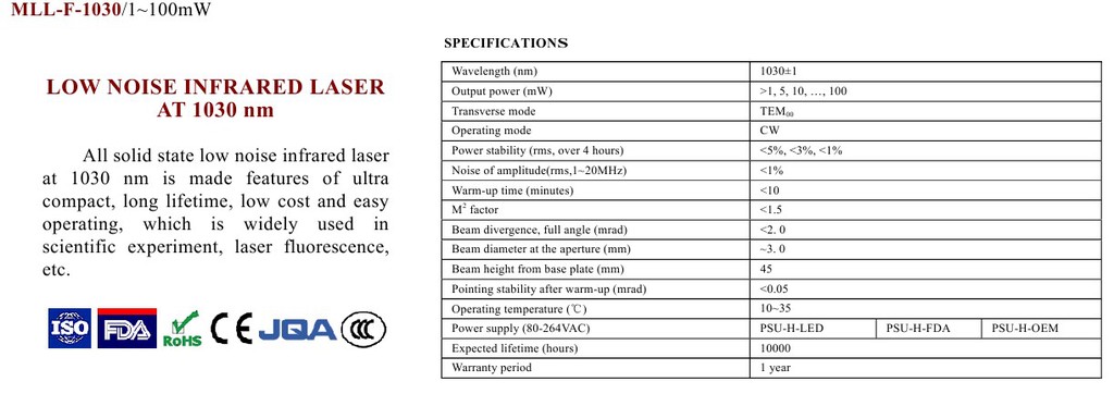 CNI的半导体泵浦固体激光器产品工作波长为266nm,355nm,440nm,457nm,473nm,490 nm,500.8nm,515nm,523.5nm,526.5nm,532nm,543nm,556nm,561nm,589nm,593.5nm,660nm,671nm,914nm,946nm,1030nm,1047nm,1053nm,1064nm,1085nm,1112nm,1122nm,1319nm和1342nm。通过十几年的努力,我们已经成为全国最大的DPSS激光器研发及生产中心,同时也是世界上其它国家低成本,高质量的DPSS激光器的主要供应商之一。