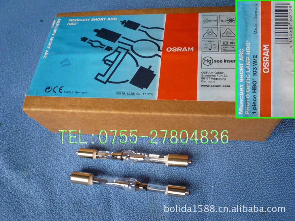 短弧汞灯 | HBO 103W/2 DC | 直流荧光显微镜(奥林巴斯),内窥镜,投影设备 |