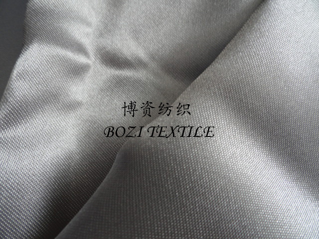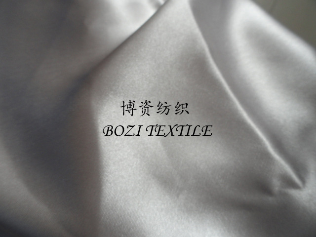 五枚缎通常有一面是很光滑的,亮度很好,就是它的缎面,所以叫五枚缎。规格通常有75×100D,75×150D等,成分是涤纶。