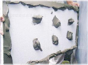 3.操作方法:在墙体基层上粘结聚苯板,可采用满浆法或点框法施工。将调好的粘结砂浆涂抹于保温板表面,涂抹厚度约10mm,立即粘贴于基层墙体上滑动就位,保证板材与基层粘结牢固。