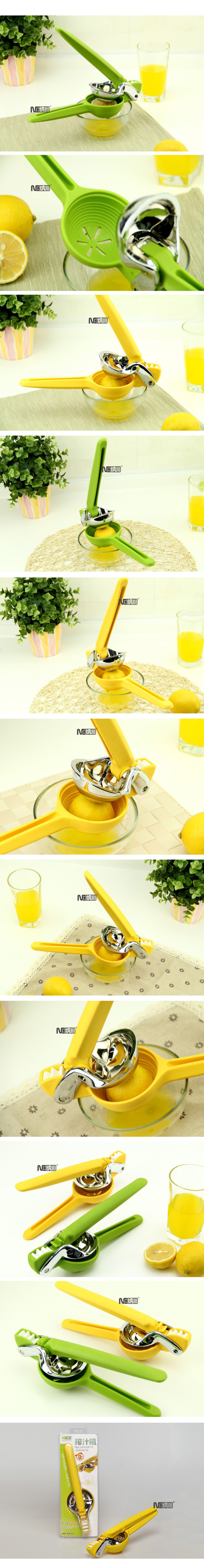 2、一手抓住榨汁机的下柄,一手拉起榨汁机的上柄,然后用力压下去,便可榨出新鲜的蔬果汁。