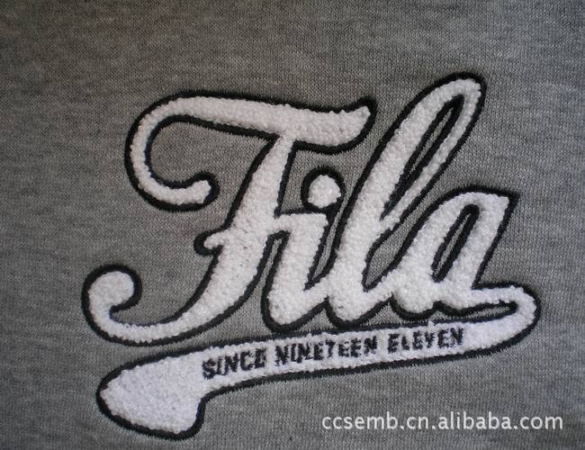 1,材质:毛毡布+毛巾绣(链条绣)+镭射热割,可依客户花型来稿定制;