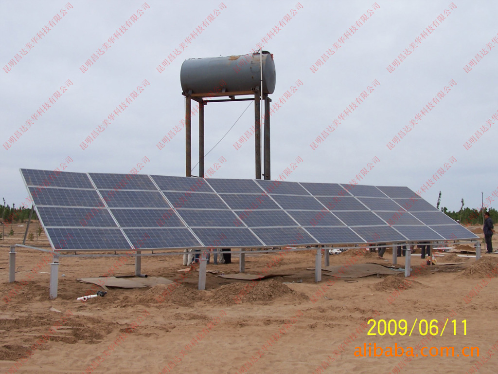 昌达美华能源太阳能抽水机系统,主要由太阳能扬水控制箱、水泵、太阳能电池板组成,广泛运用于海水淡化、沙漠治理、生活用水、农业灌溉、林业浇灌、草原畜牧、景区喷泉、水处理工程等。光伏扬水系统中省却掉蓄电池储能装置,无蓄电池装置,直接驱动水泵扬水,装置的可靠性高,减少系统投资成本。