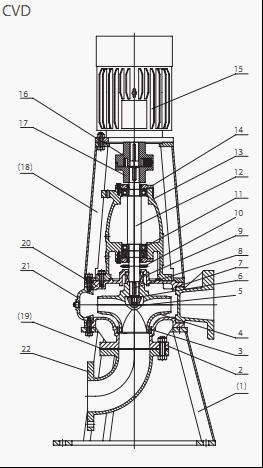 CVD -5 15-150 A(CVD:立式坚轴 CHD:卧式横轴 5:频率50HZ 15:配套功率 150:出口口径 A:电动机转速)