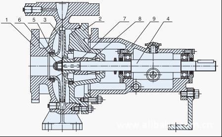 ● 泵的叶轮前后设有密封环,叶轮后盖板设有平衡孔,以平衡泵的轴向。