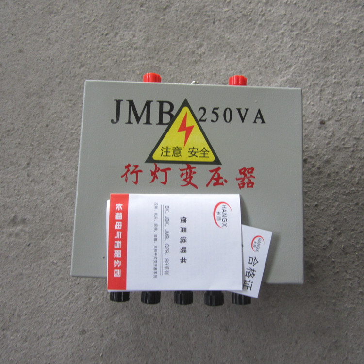 行灯变压器适用范围: JMB/BJZ/DG/BZ系列照明行灯变压器主要适用于交流50Hz(或60Hz),电压500V 及以下电路中,在额定负载下可连续长期工作。通常用于机床、机械设备中作为电器的控制照明及指示灯电源。 行灯变压器用途及结构特点: JMB/BJZ/DG/BZ型系列行灯变压器适用于交流50Hz,电压500V及以下的电路中,作为机床及其它设备的局部照明灯电源. JMB/BJZ/DG/BZ系列行灯变压器是由BK系列变压器和防护外壳构成,外壳两侧有供输入电源和负载接线用的接线柱,并有供接地用的接地螺钉。 BZ型行灯照明变压器是由BK-50、BK-100控制变压器、LS3-2型主令开关及保护开关一端的防尘薄膜处引入,通过令开关来接通和分断照明灯。 行灯变压器型号及其含义:
