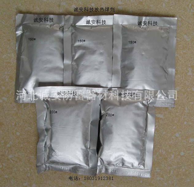 热熔焊剂(俗称火泥),是新型的焊接材料,它的原理是采用金属氧化物,在一高温的条件下,发生还原反应,将金属置出来,变成液体金属,在热熔模具的包裹下,将需要焊接的两种金属熔接在一起,形成分子结合,强度及导电性能卓越。避免了传统的焊接,出现焊渣,焊孔,容易氧化,连接强度不高,接触电阻过大等缺点。防雷科诚安技系列热熔焊剂,采用国外专用于焊接铁路的配方,内含Cu,Mn,Fe,AL等多种微量元素,经过严格的配比,机械强度及抗氧化性,都可达到国内先进水平。