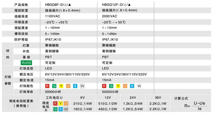 2只脚双色信号灯红波按钮产品用于手动发出控制信号以控制接触器、继电器、电磁起动器等。种类很多,分为蘑菇头式、自锁式、自复位式、旋柄式、带指示灯式、带灯符号式及钥匙式等。2只脚双色信号灯产品可以完成启动、停止、正反转、变速以及互锁等基本控制。通常每一个按钮开关有两对触头。每对触点由一个常开触点和一个常闭触点组成。当按下按钮,两对触点同时动作,常闭触点断开,常开触点闭合。2只脚双色信号灯产品常用型号有HBGQ16,19,8,12,22,25等系列。额定电压AC/DC 220V及以下.安装孔径为8,12mm的50只/盒,16,19mm的40/盒,22,25mm的20/盒。特殊电压和特殊尺寸可以订做。