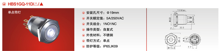 双断点快动触头按钮,19mm带灯按钮,6只脚带灯按钮