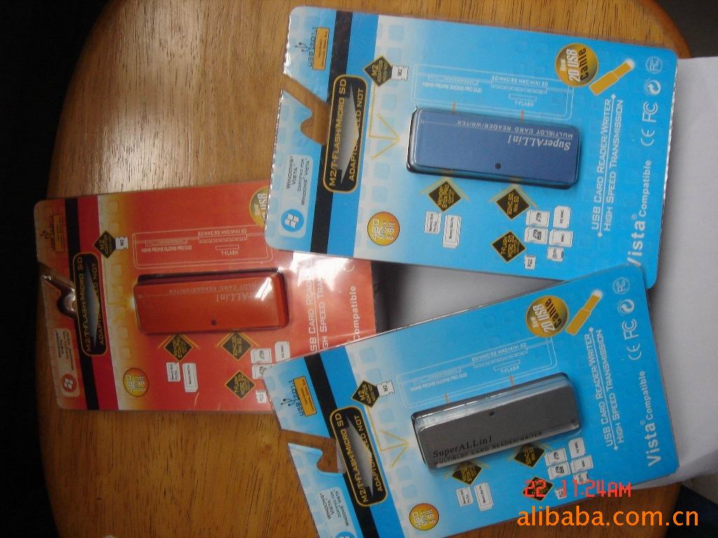 支援热插拔,USB2.0 兼容于 USB 1.1 最大传输速率可达每秒 480M bits 支援PC、Mac,耗电量低 win98SE以上操作系统免装驱动 支援 CompactFlash/SmartMedia/Memory Stick PRO/ Memory Stick Duo/Memory Stick PRO Duo/MultiMediaCard/ RS-MMC/SD Card/miniSD Card/xD-Picture Card/T-Flash/... Compliant to USB2.0 Reader and Writer support: Compact Flash/Micro Drive/Smart Media/Multimedia/ Secure Digital Card/Memory stick/Memory stick PRO/ XD-Picture Read high speed over 4.3Mbps, write high speed over 1.3 Mbps Support win98/2000/xp/Mac os V9.2 or higher Four different color, pls click to check 集成高级HUB控制器,带2个USB接口,支持USB2.0