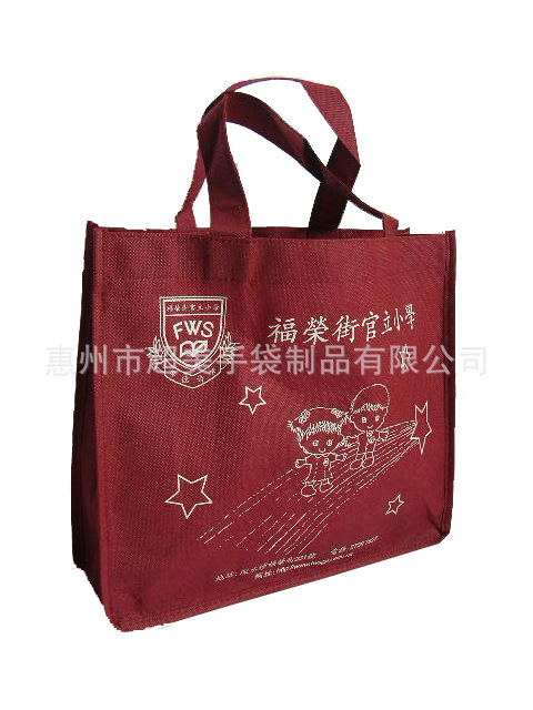 环保无纺布袋(俗称不织布袋)是一种绿色产品,坚韧耐用、造型美观,透气性好,可重复使用、可洗涤,可丝印广告、唛头、使用期长,适宜任何公司、任何行业作为广告宣传、赠品之用。消费者在购物的同时又得到了一个精美的无纺布袋子,而商家以得到了无形的广告宣传,两全其美,所以无纺布袋在市场上越来越受欢迎。