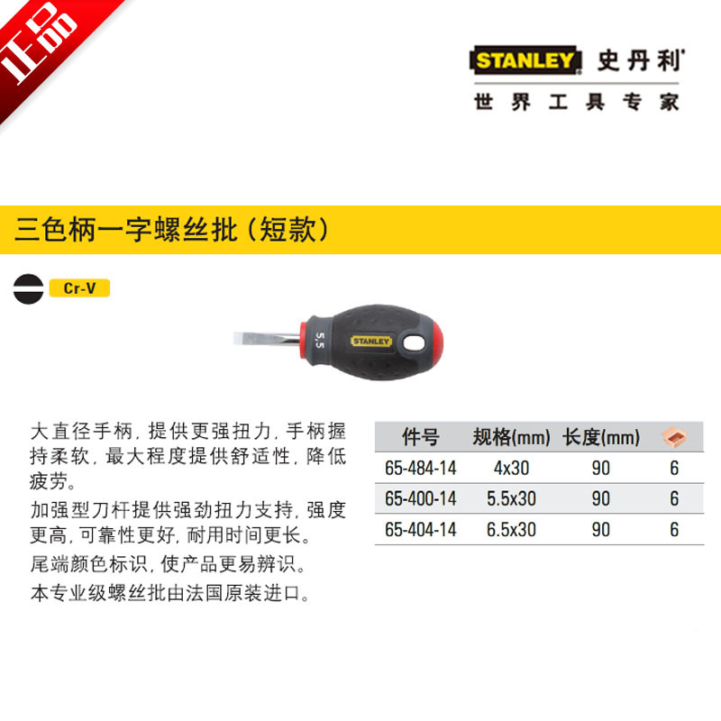 史丹利 手动工具 十字 梅花 双色柄一字螺丝批
