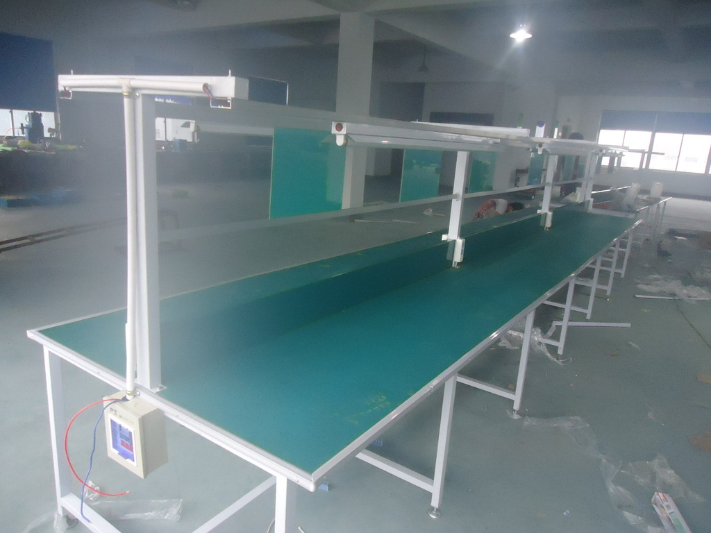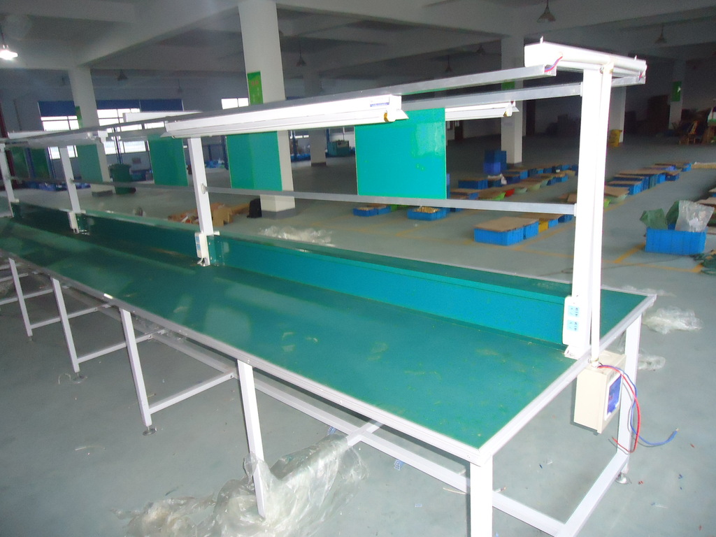 :灯架工作台双列皮带输送机 | 编号:norbans-04s | 产品简介: 皮带的材质有:橡胶、硅胶、PVC、PU等多种材质,除用于普通物料的输送外,还可满足耐油、耐腐蚀、防静电等有特殊要求物料的输送。采用专用的食品级输送带,可满足食品、制药、日用化工等行业的要求。 结构形式有:槽型皮带机、平型皮带机、爬坡皮带机、转弯皮带机等多种形式,输送带上还可增设提升挡板、裙边等附件,能满足各种工艺要求。输送机两侧配以工作台、加装灯架,可作为电子仪表装配,食品包装等装配线。 驱动方式有:减速电机驱动、电动滚筒驱动。 调速方式有:变频调速、无极变速。 机架材质有:碳钢、不锈钢、铝型材。 设备特点:输送平稳,物料与输送带没有相对运动,能够避免对输送物的损坏。噪音较小,适合于工作环境要求比较安静的场合。结构简单,便于维护。能耗较小,使用成本低。 |