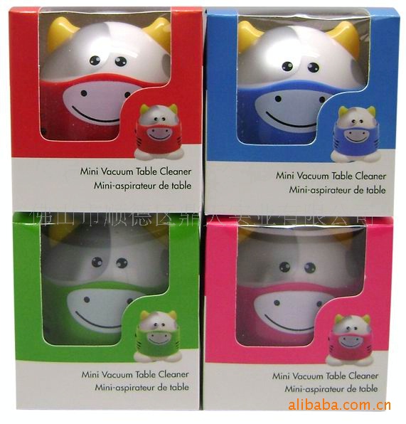 牛年礼品——奶牛迷你吸尘器新鲜上市,可爱的模样让人想立即拥有,是牛年礼品的首选。特点:1,清洁桌面的功夫出人意料,不可小视;2,电机真正12000转速,请仔细对比同类产品,认清质量;3,塑料原材料为全新料,注意市场上二次加工的翻新塑料,及低质量的电机;4,由于工艺标准不同,各细节部分棱角分明,低质量的则细节部分粗糙,无档次感觉;底部过滤网为同机注塑形成,无毒且永不剥落!