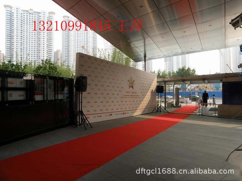 展览毯有称展览地毯,它是由合成纤维通过针刺或编织而成的。成品为布状,一般宽度为1-4米,长度为30-100米。 1:展览毯的用料分:涤纶短纤维和丙纶短纤维。 2:展览毯的颜色分:白色、红色、蓝色、绿色、黄色、紫色、棕色以及各种混合色。 3:展览毯基本分为普通展览毯\覆膜展览毯\双面背胶展览毯\防火展览毯,展览毯这种产品在针刺密度,平整度和克重方面都达到国内标准要求,其中覆膜展览毯已被大多数客户认可,其可使展览毯在特装或满铺后干净如新.双面背胶产品硬挺耐用。 4:展览毯的品种分:平面、条纹、覆膜、拉绒、阻燃等。 5:展览毯的用途:展览会、展览馆、庆典活动、开幕式、婚庆等 6:展览毯的质量要求是:不起球,不掉毛,平整度好,硬度好。 展览毯是短纤维经过不同的设备和工艺铺排成网状,在经过针刺等工艺让不同的纤维相互交织在一起,相互缠结固着使织物规格化,让织物柔软、丰满、厚实、硬挺,以达到不同的厚度满足使用要求。针刺成型的坯布再经过背面上胶,烘干定型,切边,成卷包装。 2:展览毯作用 1审美角度:美化、装饰环境:由于展览毯的颜色不同室内铺上地毯,能给人有一个良好的心境,人处于居室之中 有舒畅,轻松的感觉。 2安装铺设容易:适宜结合家居等产品进行配合搭配,起到不单调,可以经常更新室内环境的风 格,且容易更换。 3吸音和隔音:展览毯与其他铺地材料相比具有更优良的吸音隔音效果。 4保暖 :人们踩在硬质地面上有一层冰凉的感觉尤其在冬天较为显著。 5安全 :在展览毯上行走,不易打滑跌倒,即使跌倒也不易受伤。 6净化室内空气:空气中的尘埃及细菌会被地毯所吸附,从而减少尘阿病菌的流动,起到净化室内空气,提高室内空气质量的效果。 开业典礼、周年庆典、晚会策划、服装发布会新闻酒会、企业年会、工厂庆典、品牌路演新品发布、奠基仪式、开幕庆典、开工庆典、周年庆典、会议布置、文艺晚会、庆典活动、签约仪式、房产奠基、会场布置、各种会议新闻发布、签约入位、剪彩开幕、展览展示、晚会派对、竟技比赛、时装表演、文艺汇演、展览服务、会议会务、学术交流、节日庆典、广文化、广告宣传、促销推广、客户答谢会普通展览毯由于是一次性的地毯,档次较低,所以价格较低。