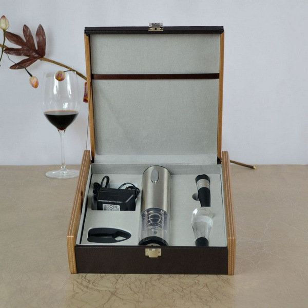 产品配置:不锈钢电动开瓶器、割纸器、真空酒塞、充电