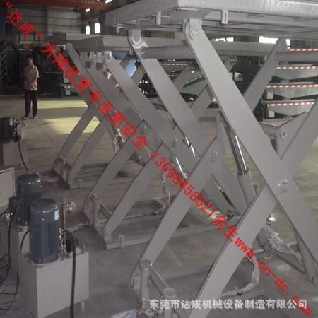 我司生产的“达成牌液压升降平台”广泛适用于中、大型企业的流水生产线及仓库升降装卸货物之用。其以优良的配置赢得广大客户的一致好评。达成液压升降平台的动力单元主件及液压密封系统均为从欧洲进口之知名品牌,性能卓越,品质保证。升降台板面及支架为宝钢集团生产的钢材精制而成,且其设有独特的接触式安全保护装置,大大地加强了工人操作的安全性。其操作亦相当简单,故障极低。贵公司尽管放心采用“达成”液压升降平台。