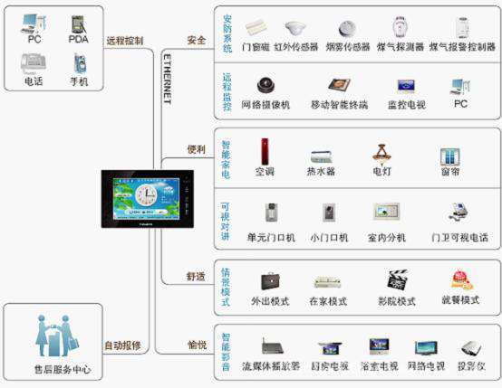 智能终端、数字分机、智能遥控器、智能触控面板、电脑、手机、ipod touch、IPAD,各种屏都可以对家中设备进行管理;