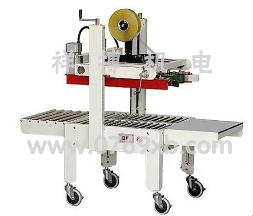 功能描术:胶带封箱机具有广泛的用途,适用于家用电器、纺织、仪器日用百货。药品、轻工、化工等各种行业产品纸箱的封箱包装,既可单机作业,也可与流水线配套使用。封箱机采用即贴胶带封纸箱封口,经济快速、操作容易、保养简单,随意调校不同大小的纸箱,封箱平整、规范、美观,同时完成上下封箱动作。采用印字胶带更可提高产品的形象。