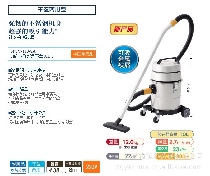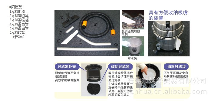 一、干湿两用型,除可吸一般垃圾,吸水之外还可以吸切屑,金属铁屑。
