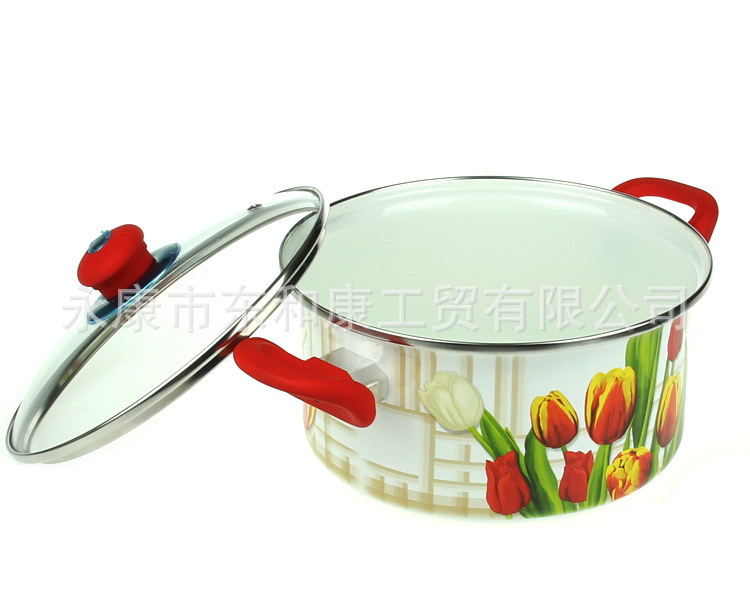 珐琅是一种优质矿石,其主要成分就是瓷,如青花瓷、景泰蓝都是属于珐琅,俗称搪瓷。锅体都是经过一千度左右的高温多次烧制而成,所以正确使用可保持长期光亮如新。并且锅体内壁也是珐琅烧制,无涂层无污染不脱落,可以用铁铲,清洁时可用钢丝球。 |