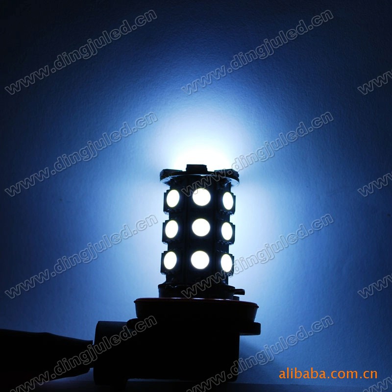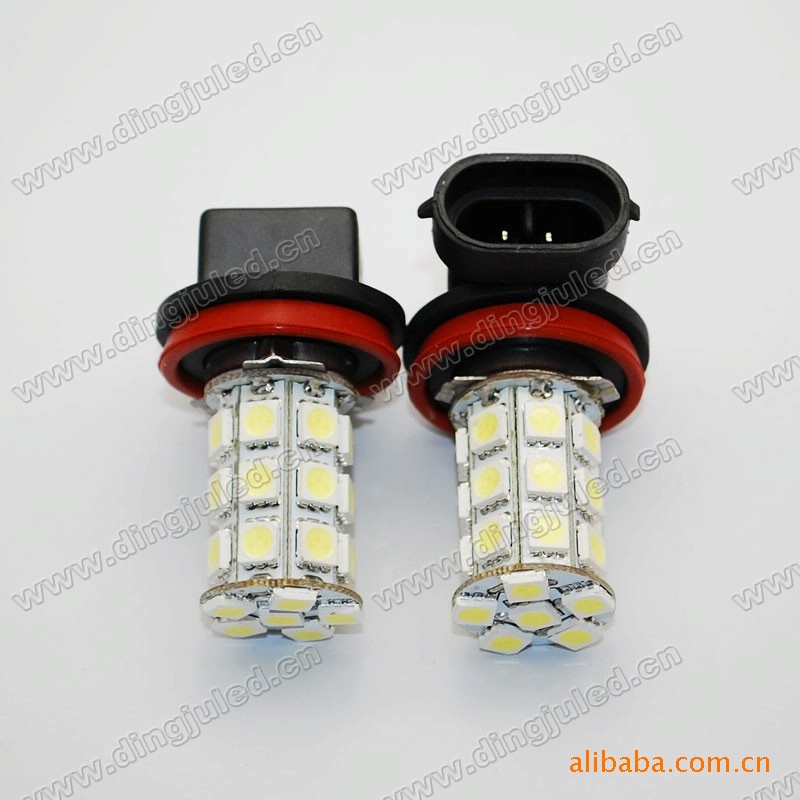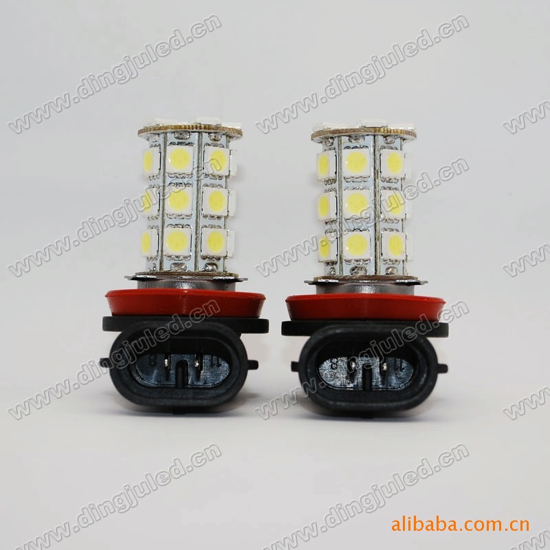 1、此款汽车H11车前雾灯由27颗5050贴片组成,采用八面设计,360度均匀发光;