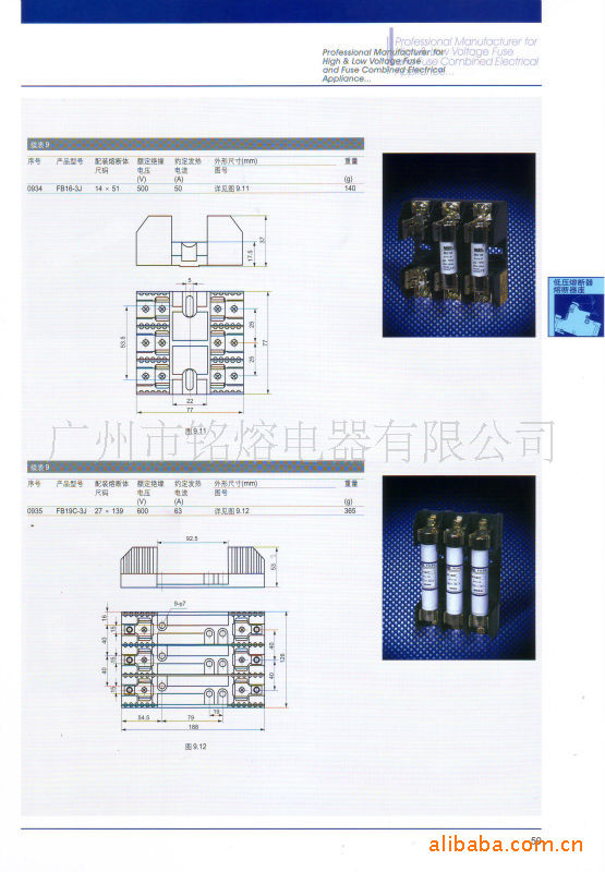 本系列熔断器支持件由塑料压制的外壳装上触头和载熔后,经铆接或焊接而成,均可组成多相结构。FB15C,FB16-3J,FB19C-3J,RT19为敝开式,其他型号都是半封闭式结构。其中RT18N,RT18B和RT18C在同一外形尺寸的底座上,可供用户选择配置五种不同尺码的熔断体;RT18N有两路进出线,一路配置相应尺码的熔断体,另一路为一个双断电常开触头,单个支持件具有隔离电源的功能;RT18型支持件均为TH35mm的导轨式安装,其中RT18L还带有安全锁扣装置,确保支持件断开状态不发生误操作。
