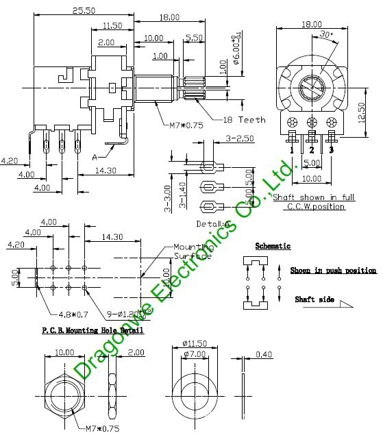 16mm推拉开关电位器/调音电位器/148推拉电位器/吉他电位器