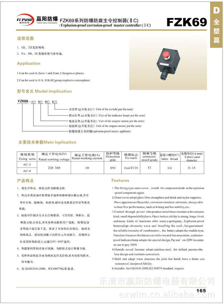 2.内装隔爆型按钮元件,具有良好的防腐防尘等防护性能;