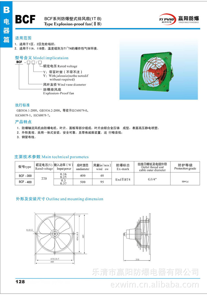 BCF防爆排风扇技术参数