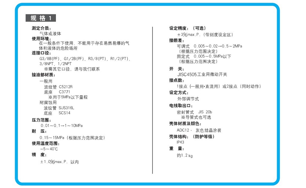 CQ21压力开关,压力开关,长野压力开关,日本长野计器
